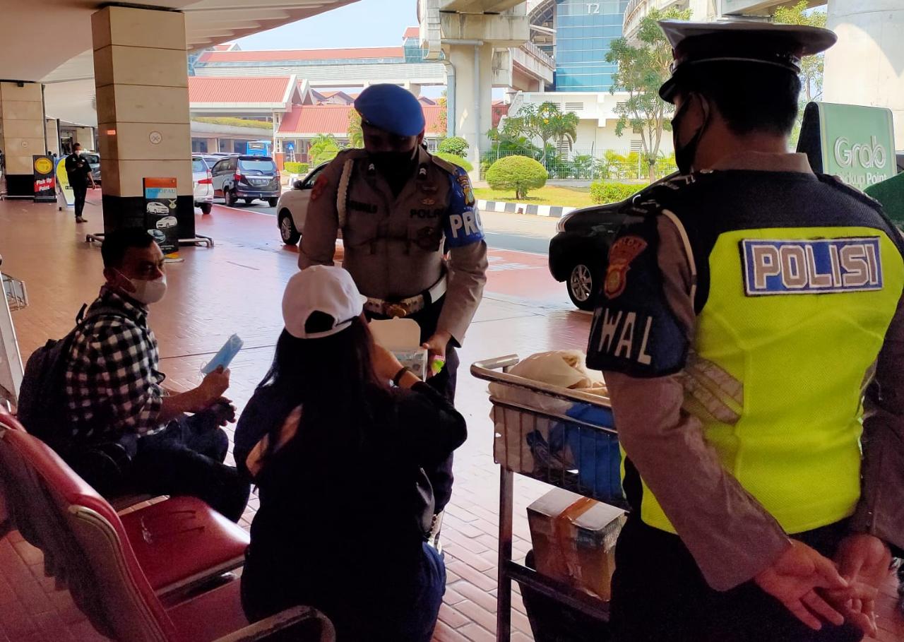 LINTASNEWS – Antisipasi terjadinya pelanggaran dan kendornya protokol kesehatan khususnya di hari libur, terminal kedatangan dan keberangkatan di Bandara Soetta diawasi Polisi.