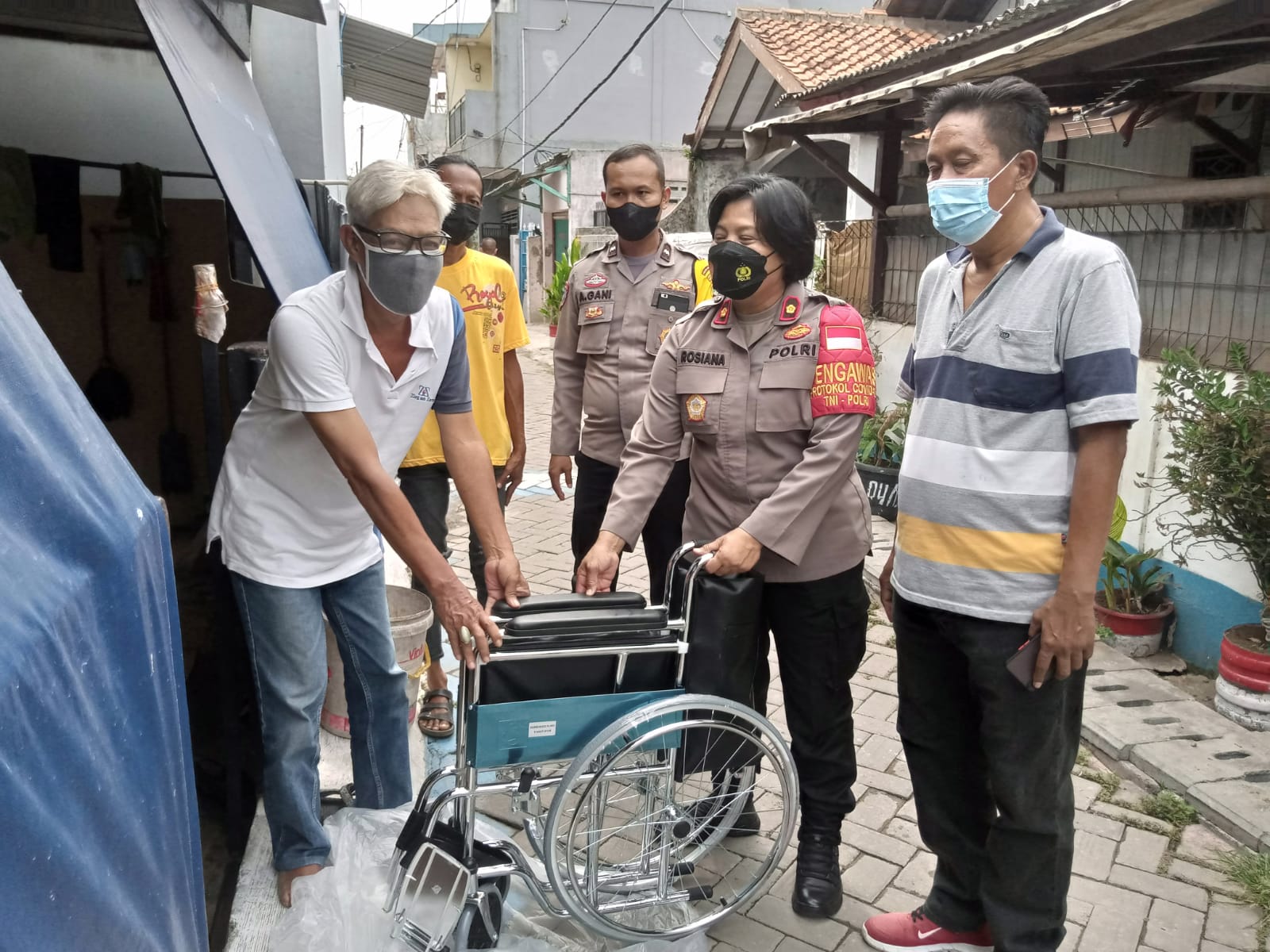 LINTASNEWS – Polsek Neglasari Polres Metro Tangerang Kota memberikan bantuan Kursi Roda ke salah satu warga di Kampung Talagasari, Kelurahan Mekarsari, Kecamatan Neglasari, Kota Tangerang, Rabu (27/10)