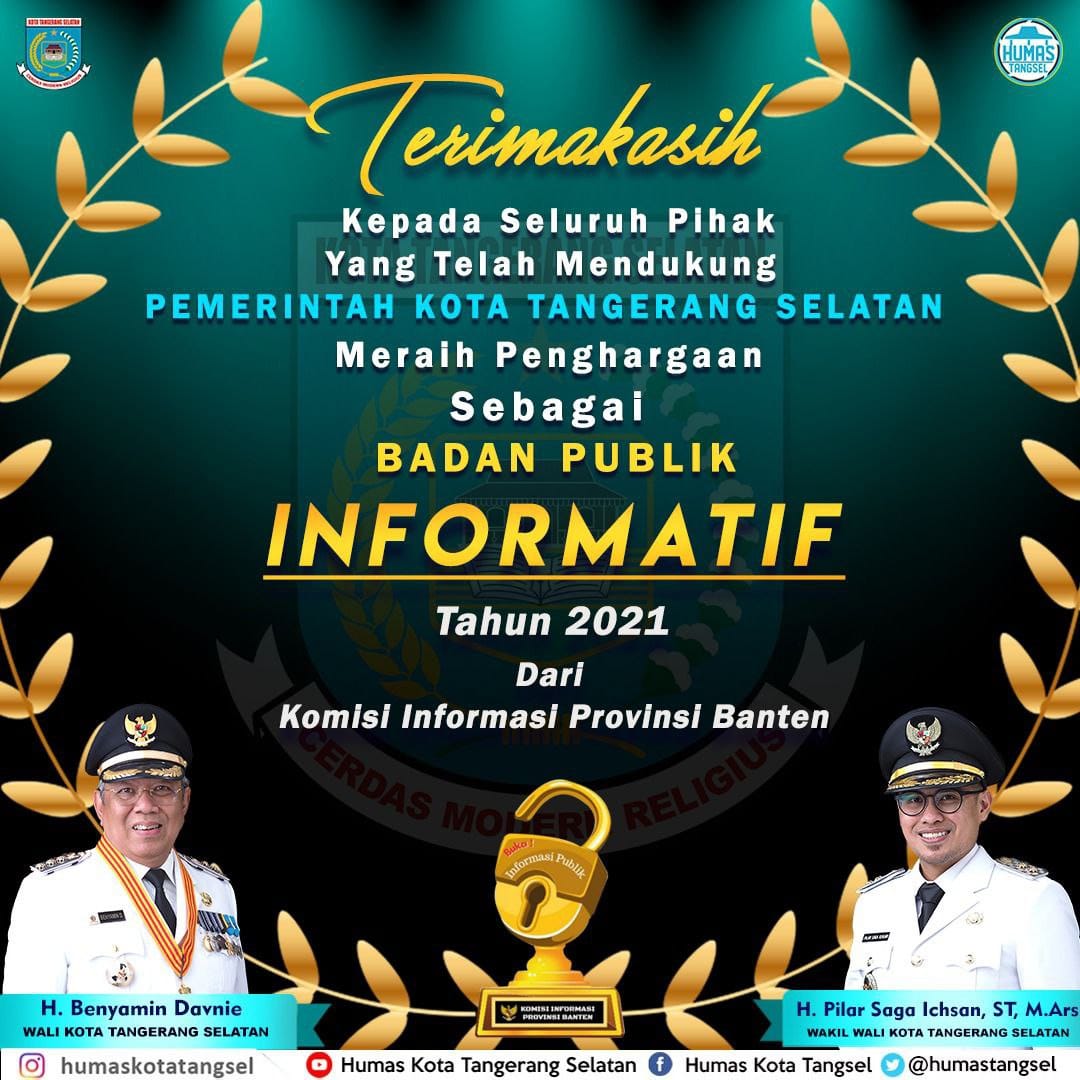 Wali Kota Tangerang Selatan, Benyamin Davnie menjelaskan bahwa Pemkot Tangerang Selatan memperoleh penghargaan sebagai Pemda Berkualifikasi Informatif berdasarkan sejumlah indikator.